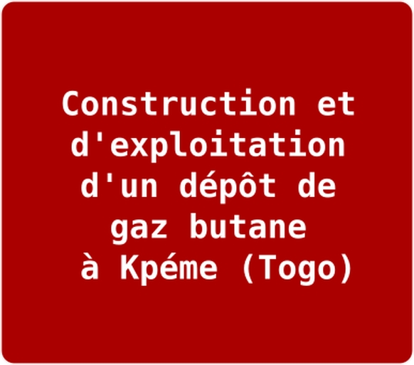 Infrastructures d'Energie Construction Et D'Exploitation D'Un Dépôt De Gaz Butane À Kpémé (Togo) TOGO